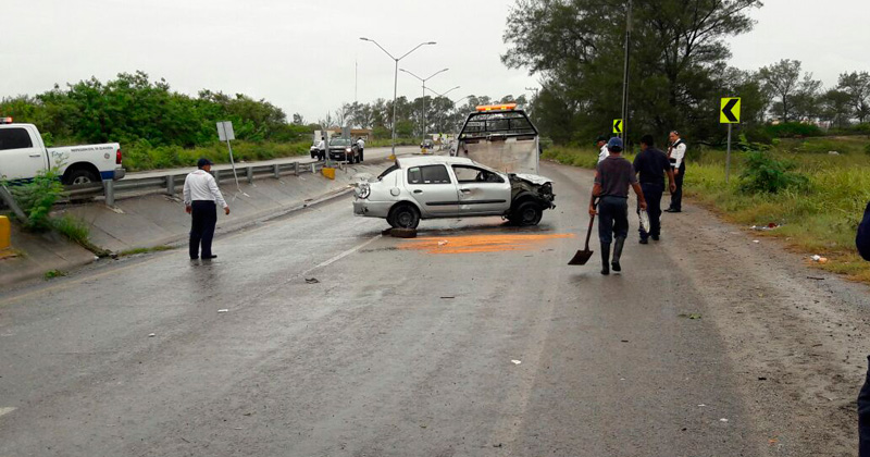 El percance ocurrió a las 10:30 horas a la altura del kilómetro 3 y sobre el pavimento quedó volcada un automóvil Nissan Platina color gris.