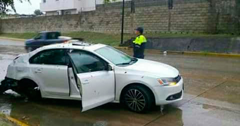 Agentes de tránsito informaron que el conductor se desplazaba a más de cien kilómetros por hora, y ante el pavimento mojado, perdió el control del volante, siendo esta la causa del brutal percance.