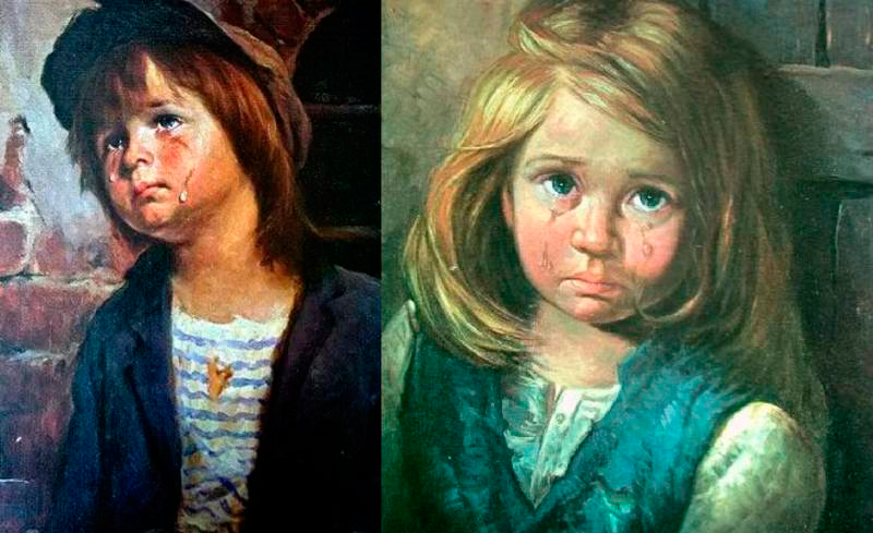 MÉXICO.- Existe una peculiar colección de cuadros titulada como ‘Los niños llorones’ que retrata precisamente a infantes con rostros lagrimosos. Las pinturas han inquietado a más de uno al rededor del mundo, debido a la supuesta leyenda que corre en torno a éstas. El mito cuenta que supuestamente los poseedores de estas pinturas suelen sufrir desgracias y hechos que involucran a lo paranormal.