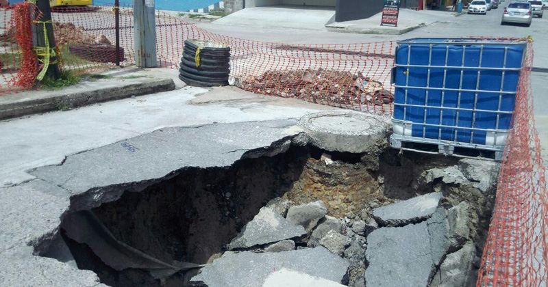 El hundimiento que se registra en la colonia de la Unidad Nacional, ya ha sido acordonado por Comapa