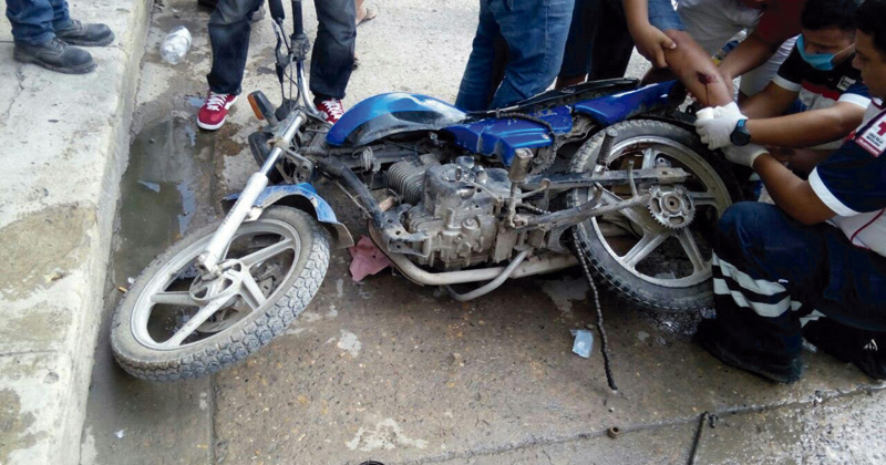 Tras chocar con un taxi, el pie de la mujer se atoró entre la cadena de la unidad, al seguir rodando le cortaba la extremidad