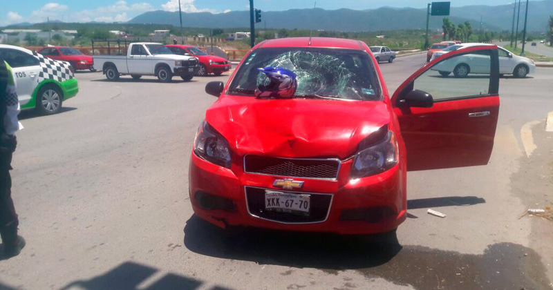 Conductora se pasa un alto y su coche embiste a un motociclista. Sufre lesiones de gravedad. Al golpe se le zafa el casco y se golpea el cráneo