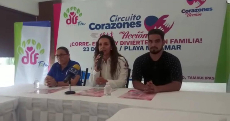 La presentación oficial de la carrera “Circuitos Corazones en Acción” estuvo a cargo de la secretaria Particular de la Presidencia del DIF Raquel Esther del Río y de los coordinadores Alejandra Hernández Linares y Gilberto Adame.