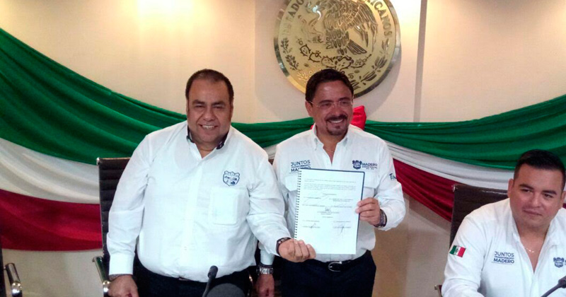 CIUDAD MADERO, Tamaulipas.- El Gobierno de Madero y el Sindicato Único de Trabajadores al Servicio del Heroico Ayuntamiento (SUTSHA), firmaron el nuevo contrato colectivo de trabajo.