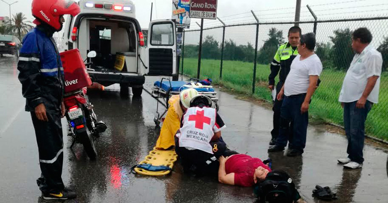 De acuerdo con testigos, la mujer estaba por llegar a la banqueta cuando el taxista rebasó por la derecha derribándola