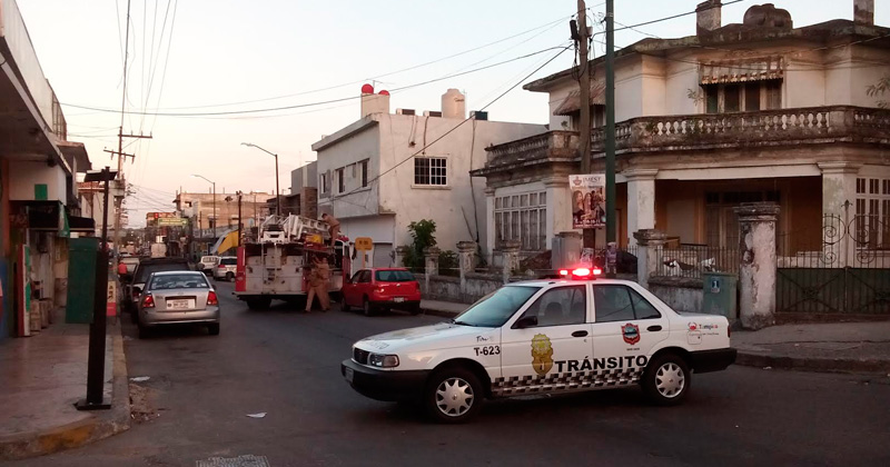 Agentes de tránsito cerraron la circulación vial de la calle Tamaulipas, ante la caída de los cables