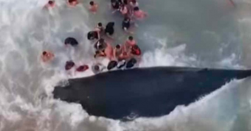 Una ballena jorobada quedó atrapada en varias redes de pesca en la playa de Punta Carnero, Ecuador; después de varias horas, el mamífero pudo regresar al mar