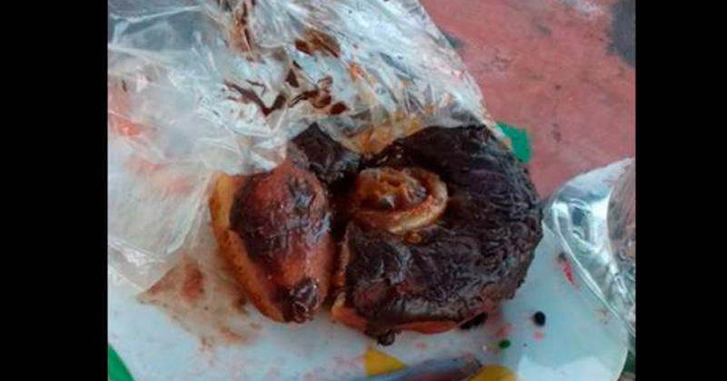 Encuentra condón en una dona