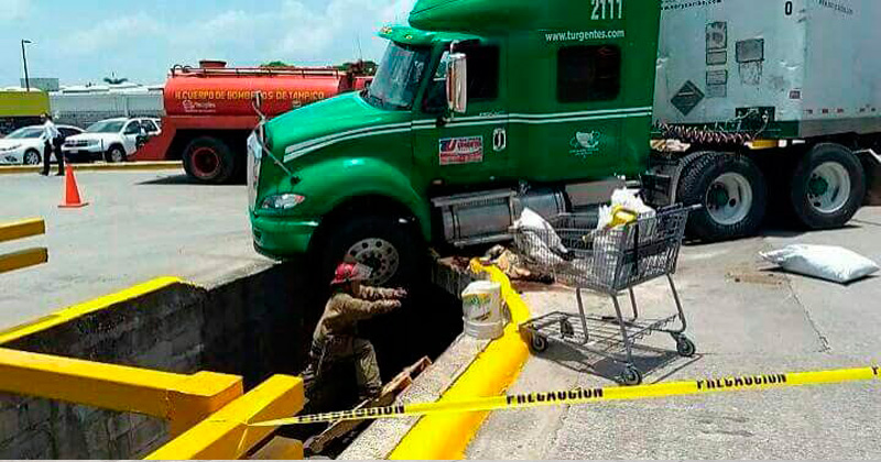 Una mala maniobra provocó que la unidad cayera a un canal a cielo abierto ubicado frente a la tienda Sams