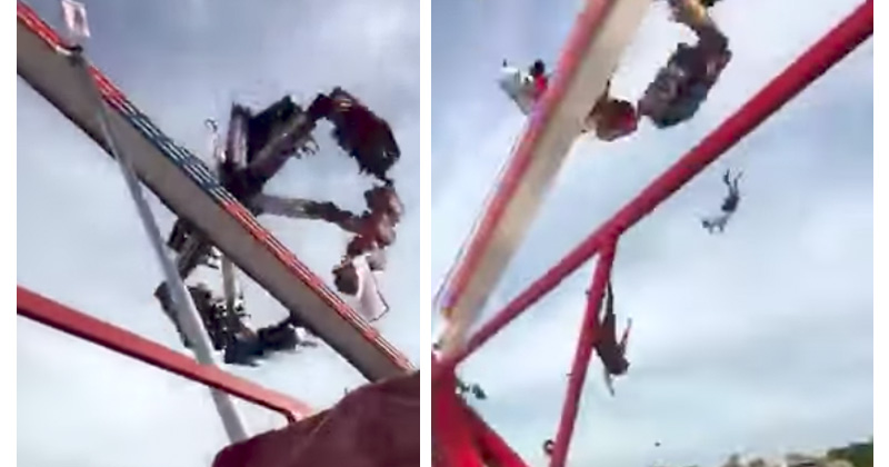 De acuerdo con los vídeos del accidente, una parte del círculo se desprendió en uno de los balanceos de la atracción