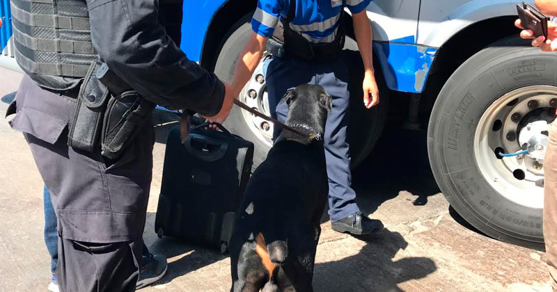 De acuerdo con el encargado de los binomios, estas revisiones se llevan a cabo de manera aleatoria a los maleteros de los autobuses. Los canes están entrenados en la búsqueda de explosivos y drogas.