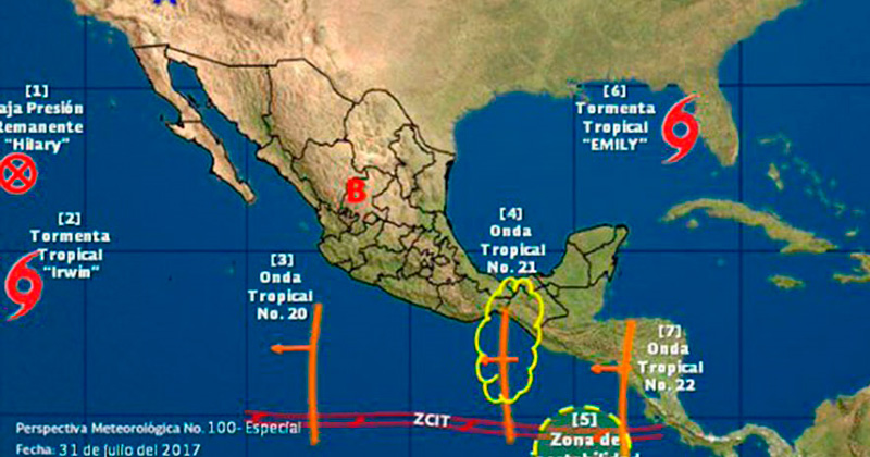 Emily, la sexta tormenta tropical de la temporada de huracanes en el Atlántico, se formó hoy en el Golfo de México, cerca de la costa occidental de Florida