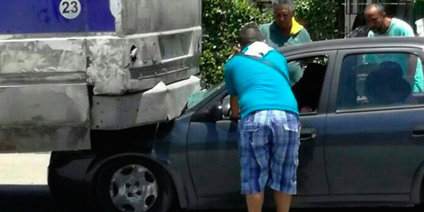 Se distrae e impacta contra autobús