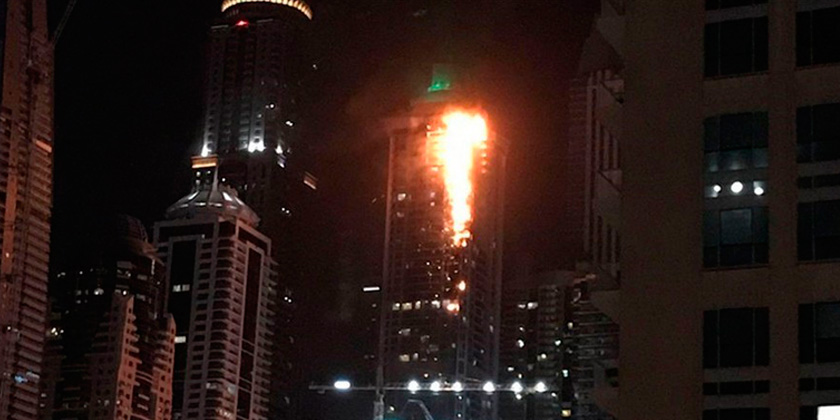 Incendio consume edificio en Dubai