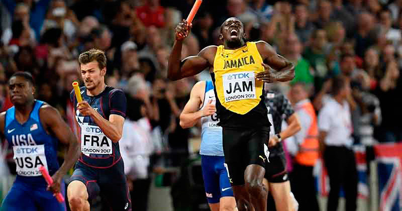 El velocista jamaicano no termina la carrera de 4×100 en el Mundial de Atletismo, la última de su carrera, por una dolencia