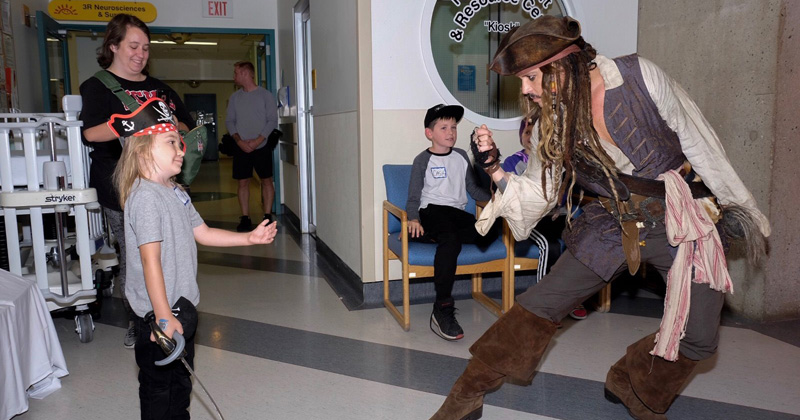 El pirata más famoso de la gran pantalla regaló momentos de felicidad en el Hospital infantil de BC en Vancouver, Canadá
