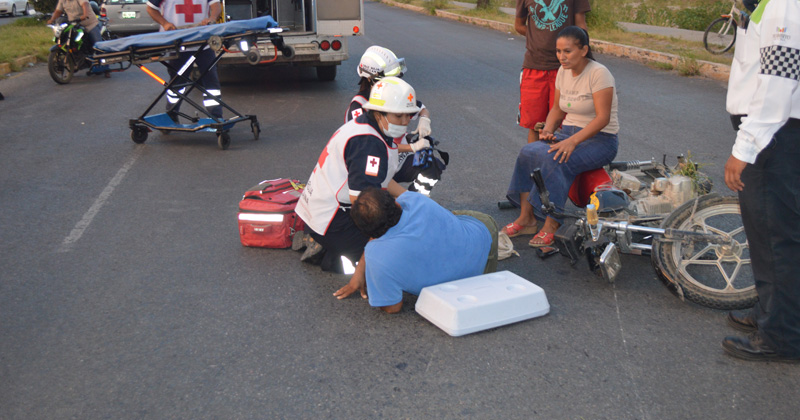 Joven automovilista que se desplazaba a exceso de velocidad alcanza a atropellar a la pareja que viajaba a bordo de una moto, termina por estrellarse contra un poste; el coche quedó destrozado