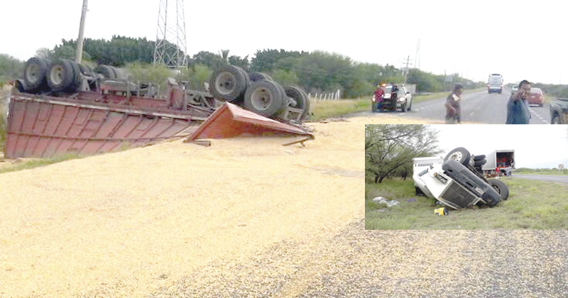 Uno de los tractocamiones alcanza a rescatar la carga, el otro convoca a una multitud de lugareños que hasta con las manos se llevaron kilos y kilos de maíz