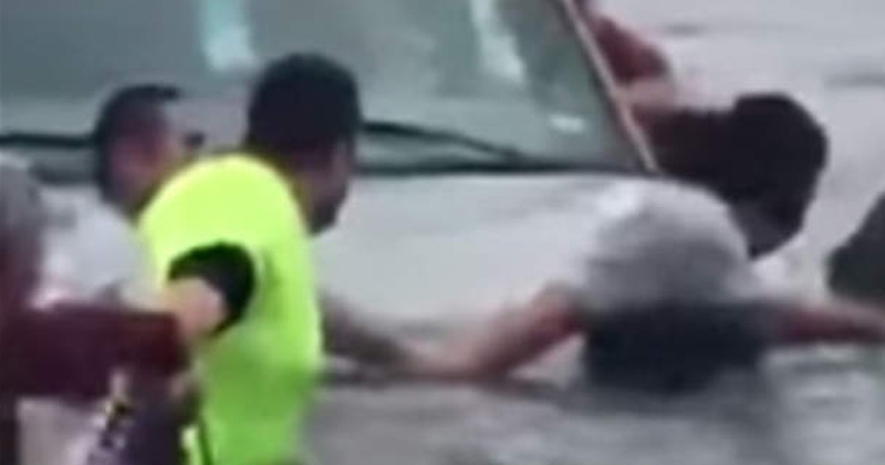 Un nuevo video publicado en redes sociales muestra el momento en el que un grupo de personas se percata de que un hombre mayor se encontraba atrapado dentro de su camioneta