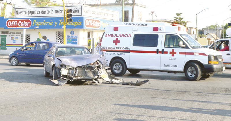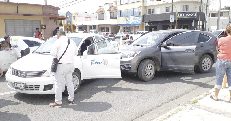 Dama olvida hacer alto y choca un auto de gobierno que se recargó en otro vehículo