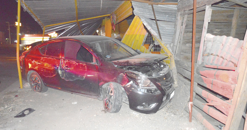 Hasta el asador se metió un automovilista alcoholizado que al dar una vuelta de manera imprudente terminó estrellándose con el negocio y causando daños por 20 mil pesos