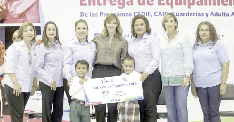 La presidenta del DIF estatal, Mariana Gómez de García Cabeza de Vaca repartió equipo con el propósito de fortalecer la ayuda para familias vulnerables