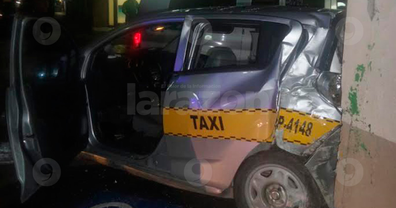 El taxi tras el impacto, dio un giro y en reversa de proyecto en contra de la barda de una escuela