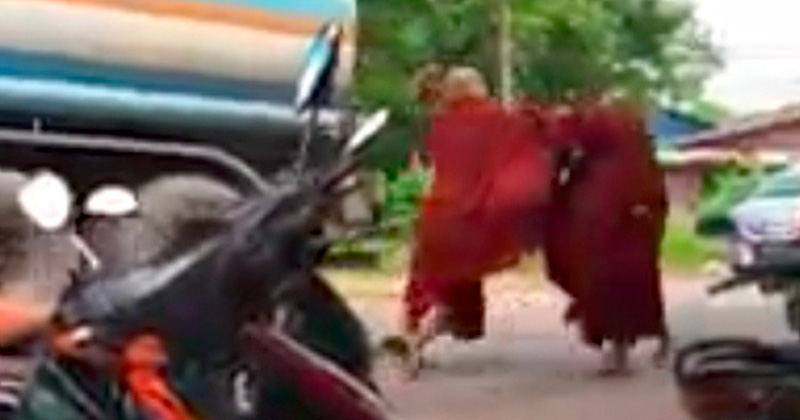 Captan a budistas peleando en plena calle