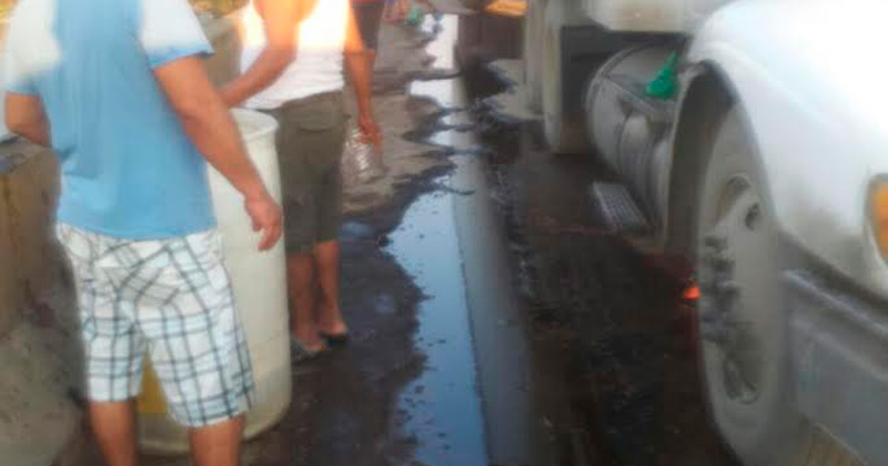 Sin mediar riesgos imprudentes vecinos acudieron a recoger el diesel derramado