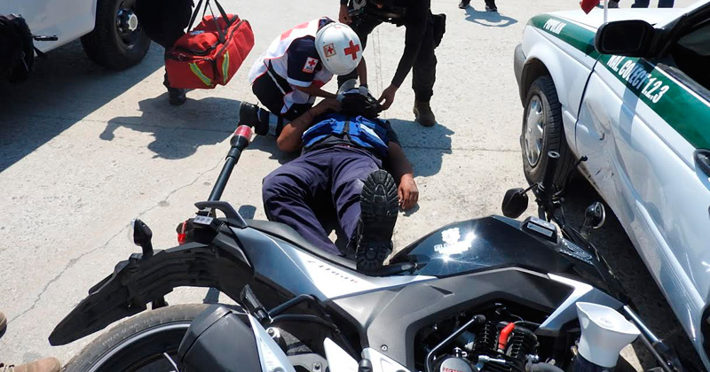 Paramédicos de Cruz Roja le dieron los primeros auxilios al agente vial y posteriormente lo trasladaron a un hospital