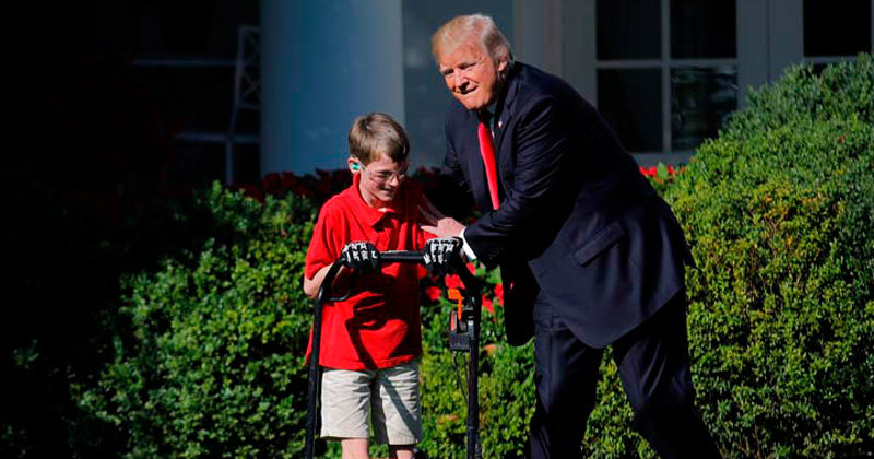 Niño cumple sueño de cortar el césped de la Casa Blanca