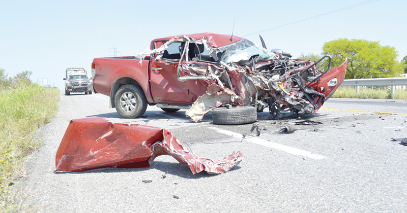 Pulverizadas quedaron las dos unidades que chocaron ayer en la carretera ciudad Victoria-Monterrey; milagrosamente no hubo heridos de gravedad