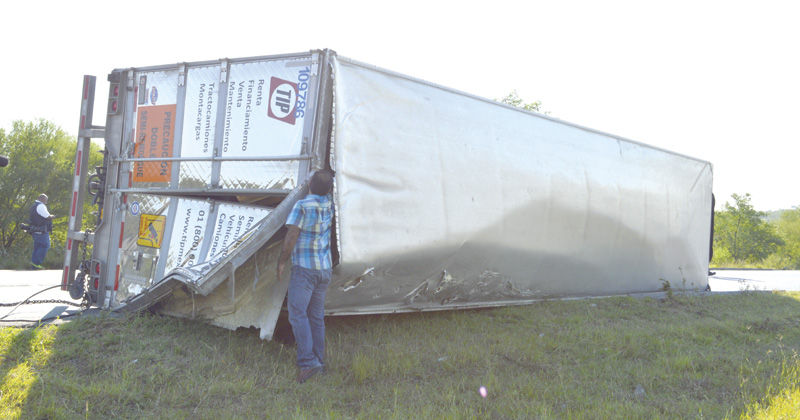 A un tráiler que transportaba 40 mil litros que serían entregados en Mante y Valles se le desprende un contenedor que quedó atravesado en la carretera a Zaragoza
