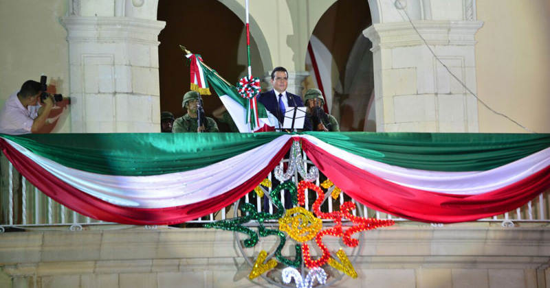 El alcalde José Ríos Silva dio desde el balcón de presidencia municipal el grito de independencia en honor a los héroes que nos dieron patria y libertad