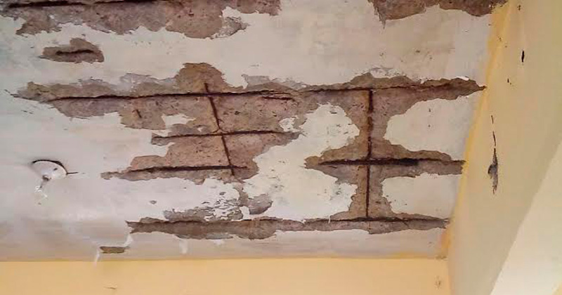 Realizaron la inspección de la escuela, admitiendo que las condiciones en dos aulas son de cierto nivel de riesgo al presentar desprendimiento de concreto