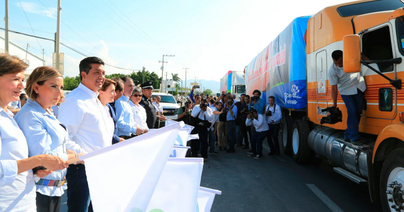 El gobernador Francisco García Cabeza de Vaca y su esposa Mariana Gómez de García Cabeza de Vaca dieron el banderazo al primer envío de ayuda donada por las y los tamaulipecos, será canalizado a familias damnificadas de los estados de Chiapas y Oaxaca