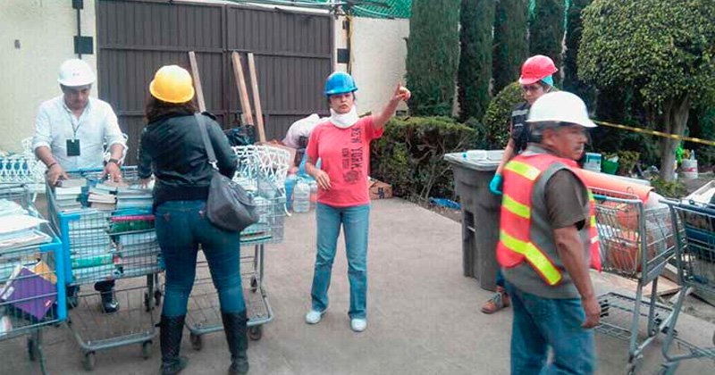 Directora de Colegio Rébsamen salva sus cosas durante rescate