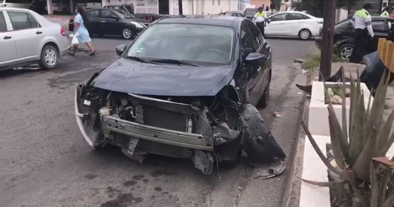 Dama al volante se pasa el alto y se estrella en un Chevrolet Cobalt color negro, causando daños de alrededor de los 50 mil pesos; no se reportaron personas lesionadas