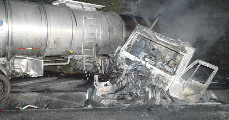 Después de chocar, el chofer trata de apagar las llamas pero la cabina le estalla enfrente y le causa quemaduras de primer grado en rostro y ambos brazos