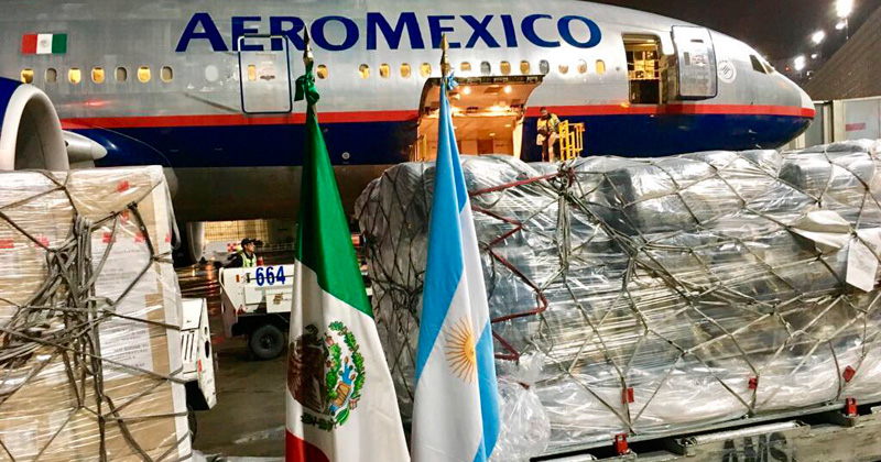 México recibe de Argentina 4.2 toneladas de ayuda humanitaria