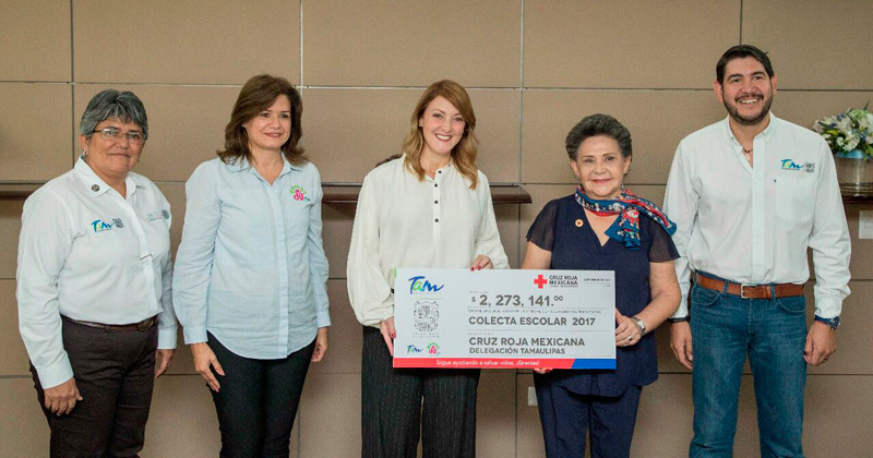 La presidenta del DIF Tamaulipas, y presidente honoraria de la Cruz Roja Mariana Gómez de García Cabeza de Vaca, recibió un cheque por 2 millones 273 mil 141 pesos