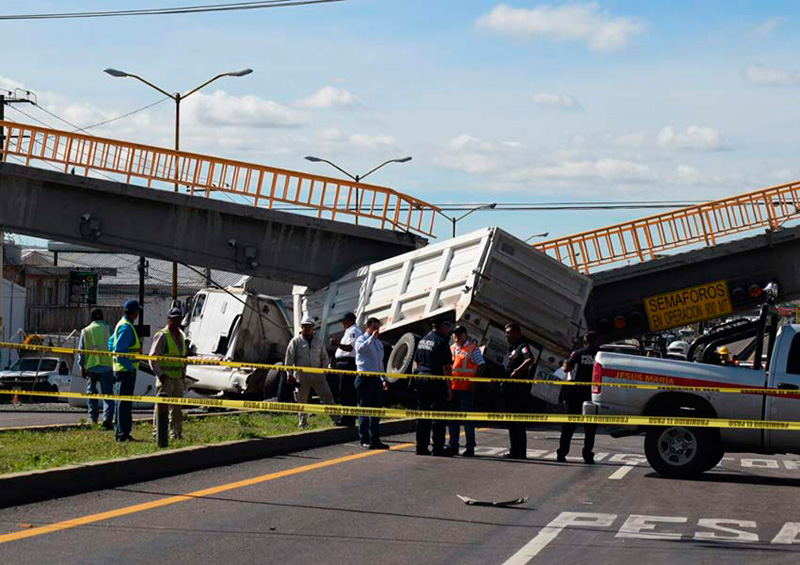 Tráiler impacta a tres vehículos y derriba puente en Aguascalientes
