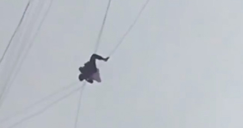 Se fuga por los cables de teléfono para no pagar hospedaje (VIDEO)