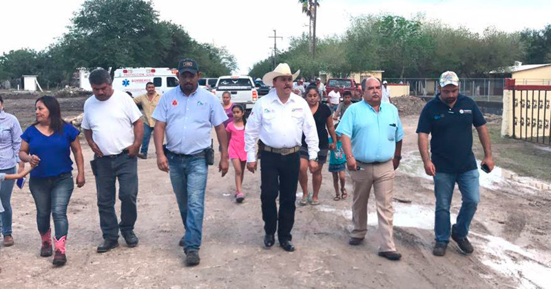 SAN FERNANDO, Tamaulipas.- Para brindar atención a la contingencia suscitada a causa de tromba que azotó la madrugada del domingo en el ejido Águila Azteca y comunidades aledañas, el alcalde José Ríos Silva gestionó ante instancias estatales apoyos en beneficio de los damnificados.