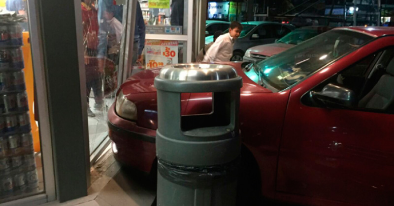 El auto brincó un tope y se registraron daños materiales en las instalaciones