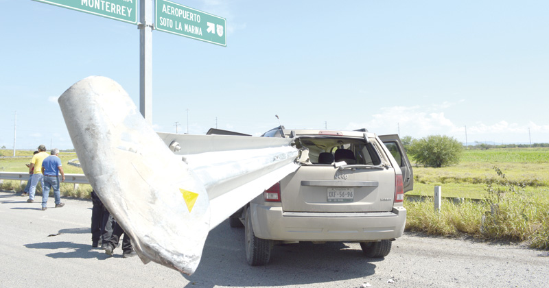 Familia choca contra una barra de contención que termina por atravesar su camioneta completamente, milagrosamente logran salir vivos del accidente