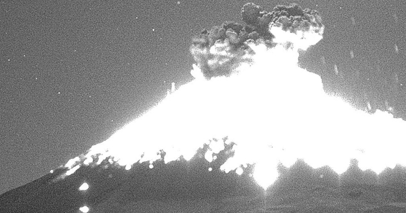 Se registró una explosión acompañada de fragmentos incandescentes arrojados a una distancia aproximada de 600m del cráter