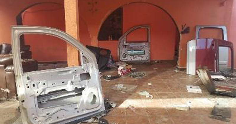 En el lugar se aseguraron 14 puertas de vehículo, 4 con coraza artesanal y 10 sin protección artesanal, un toldo a prueba de balas y una máquina para soldar