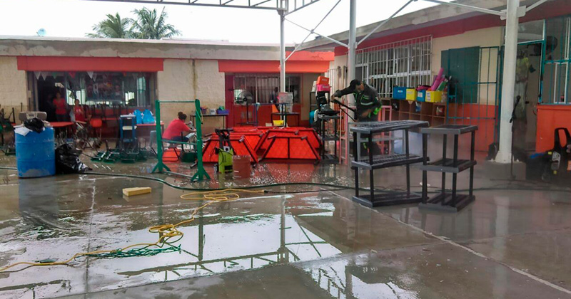 La primaria “Francisca Gómez Segura” y el kínder “Estefanía Castañeda” fueron severamente afectados por la inundación hace una semana