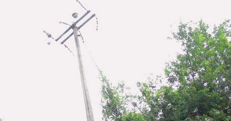 La mitad del los postes de la CFE están totalmente ladeados y algunos incluso amenazan con colapsar